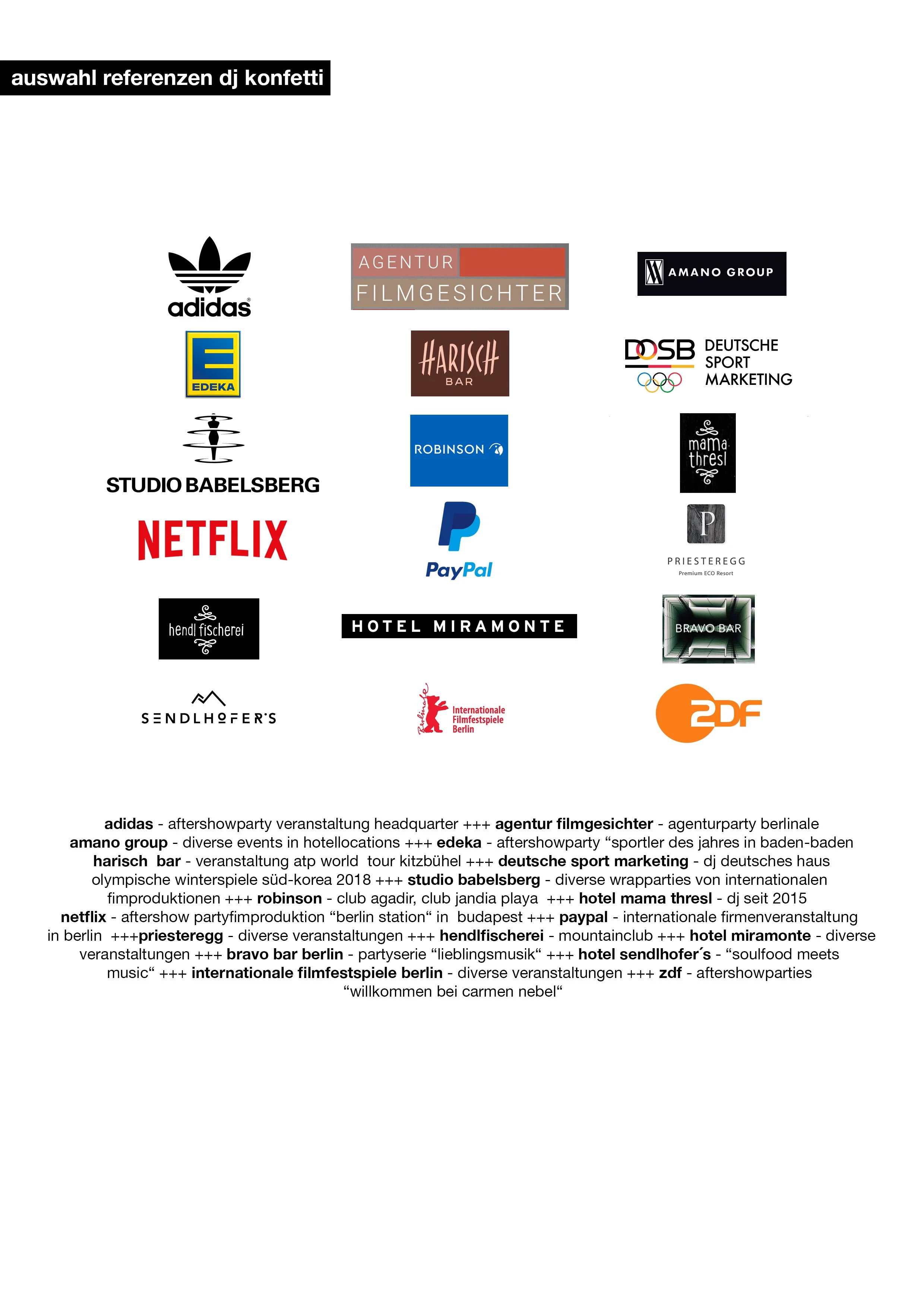In meiner bisherigen Laufbahn als DJ durfte ich für verschiedene Unternehmen, Agenturen und Veranstalter auflegen – an unterschiedlichen Orten in Europa und darüber hinaus.